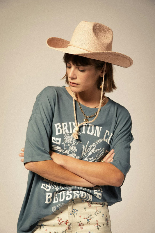La t-shirt Brixton Bloom è una maglietta dalla vestibilità oversize realizzata in morbido cotone. È caratterizzata da una grafica personalizzata stampata sul petto e girocollo a costine.