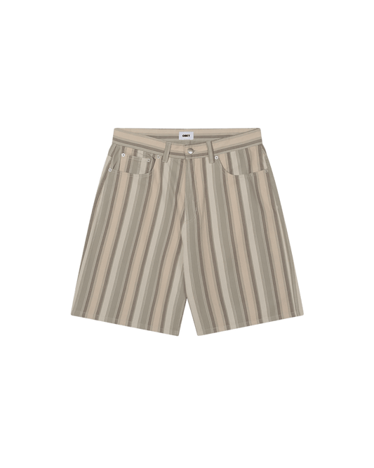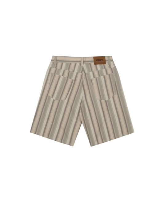 Gli short OBEY Baja Stripe in denim sono un classico modello 5 tasche caratterizzato da una vestibilità morbida e tessuto a righe.