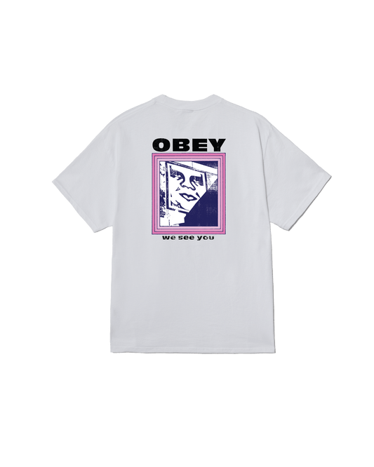La t-shirt OBEY We See You a maniche corte è realizzata in morbido cotone e presenta una grafica personalizzata stampata sul petto e sulla schiena.