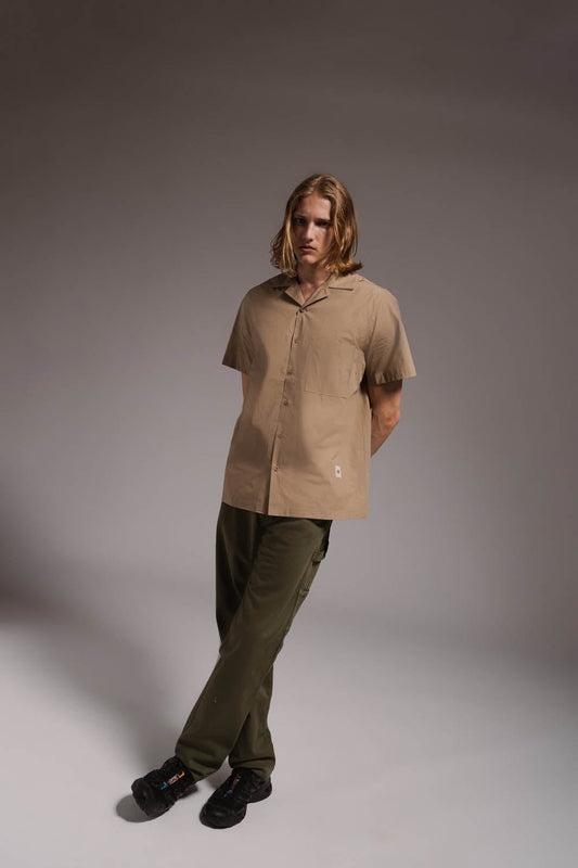 Questa camicia CAT a maniche corte è caratterizzata da una chiusura frontale con bottoni, taschino sul petto ed etichetta in tessuto con logo.