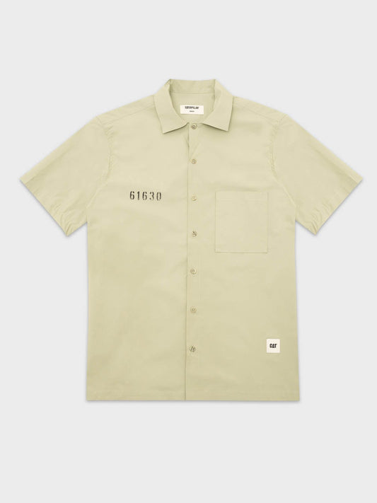 Questa camicia CAT a maniche corte è caratterizzata da una chiusura frontale con bottoni, taschino sul petto e grafica stampata.