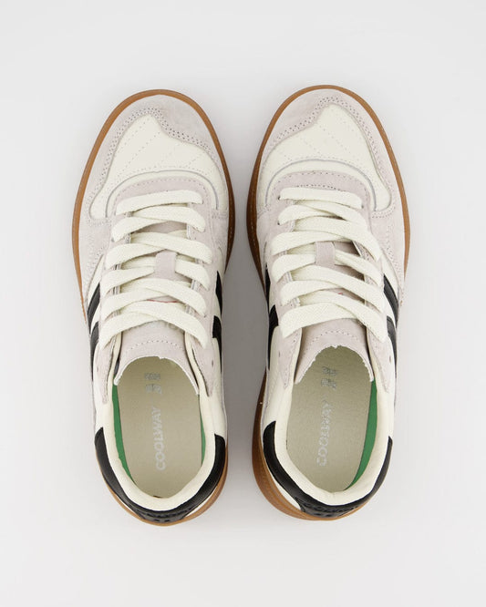 Le scarpe Coolway Goal sono il modello più iconico del brand. Realizzate in pelle scamosciata con dettagli di colore a contrasto, sono dotate di lacci piatti intercambiabili in cotone bicolore e di una suola flessibile in gomma che fornisce durata e aderenza.