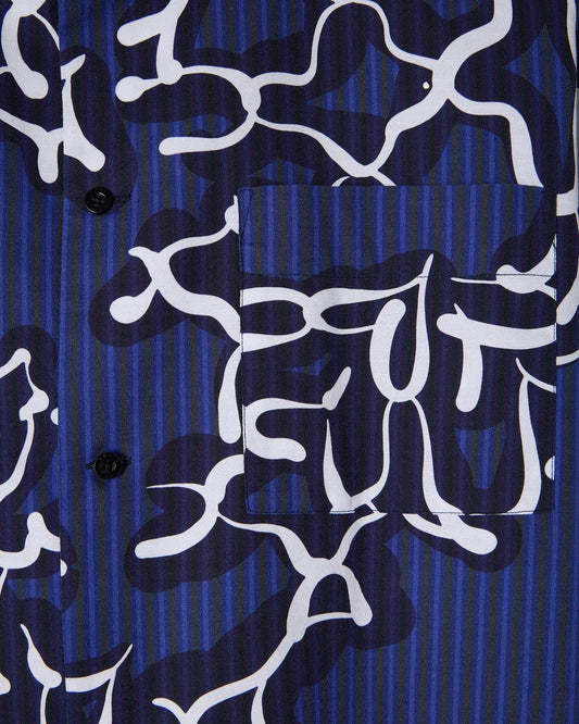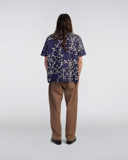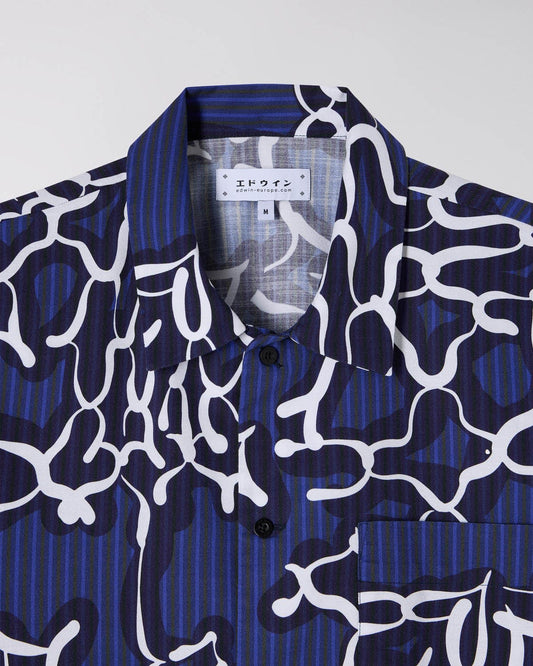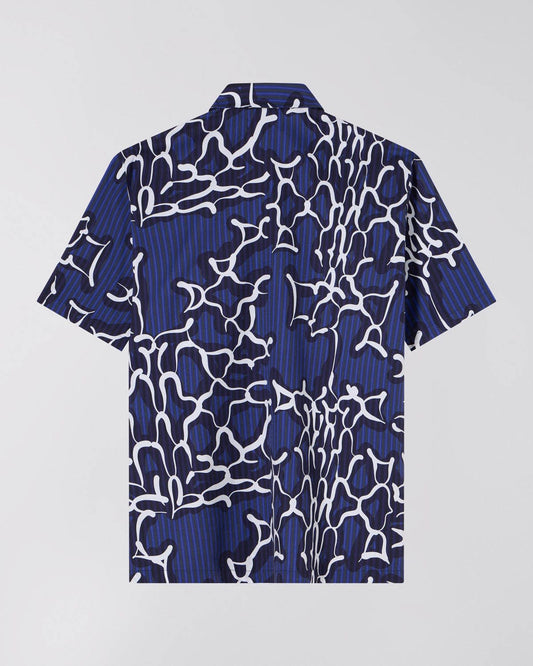La camicia EDWIN Yugami a maniche corte presenta una vestibilità morbida ed è caratterizzata da chiusura frontale con bottoni, tasca sul petto e stampa personalizzata all-over.