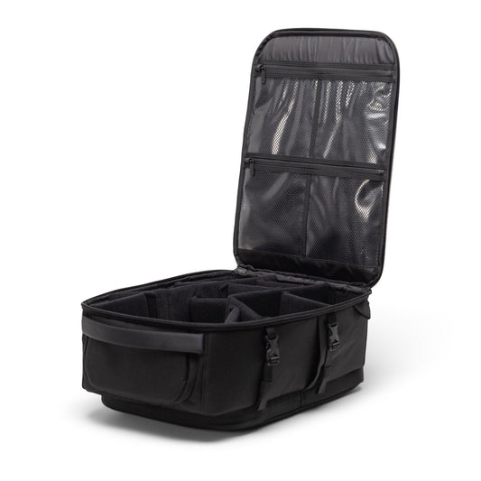 Rimani connesso con la borsa Kaslo Camera Tech. È dotata di una tasca superiore per un rapido accesso alla fotocamera e di uno scomparto anteriore con organizer interni per cavi, schede di memoria e piccoli oggetti. Lo scomparto principale include divisori regolabili per riporre perfettamente la fotocamera e gli obiettivi. Fissala al tuo bagaglio con una custodia trolley in rete traspirante per viaggiare facilmente.