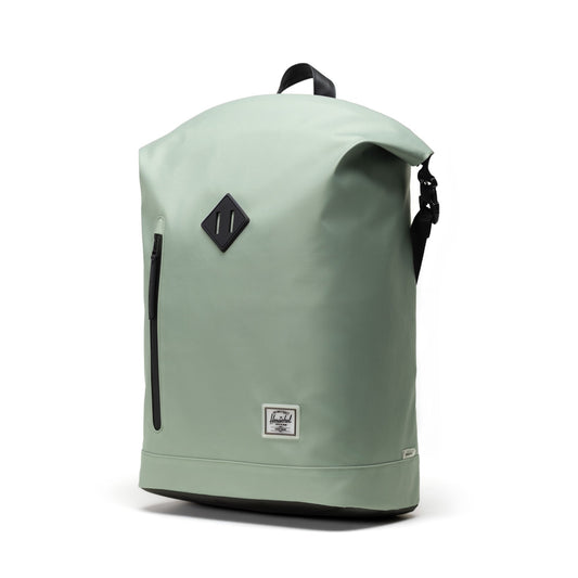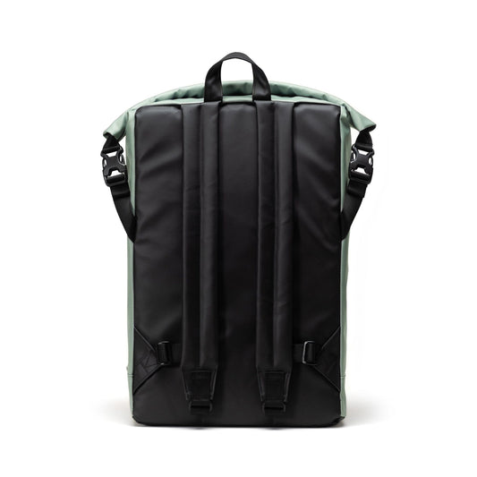 Pronto per la pioggia. Realizzato con materiali riciclati e un rivestimento idrorepellente, lo zaino Roll Top è dotato di un sistema di chiusura arrotolabile per mantenere i tuoi devices asciutti durante gli spostamenti quotidiani.