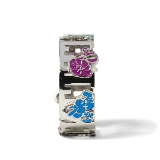 Anello HUF Trip realizzato in acciaio inossidabile con grafica stampata e scatola personalizzata.