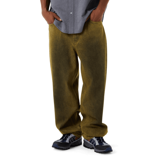 I pantaloni HUF Cromer Washed Pant sono stati progettati in collaborazione con Brad Cromer, per un jeans ampio ispirato agli anni '90 che combina tutti gli aspetti dei pantaloni preferiti di Brad. Realizzati in denim di cotone resistente, questi pantaloni da skate sono rinforzati in corrispondenza delle cuciture critiche e presentano un logo HUF ricamato sul taschino e un'etichetta Cromer sulla cintura.