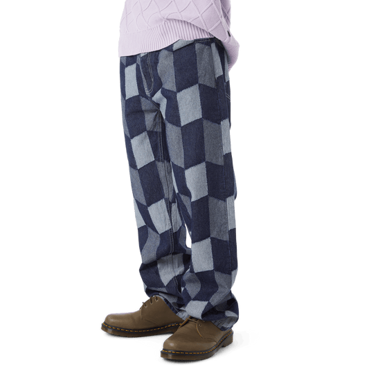 Creati con un motivo jacquard personalizzato all-over, i pantaloni in denim HUF Patchwork fondono il color-block geometrico con il denim di cotone tono su tono e il design workwear.
