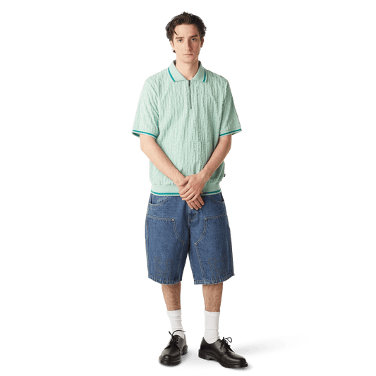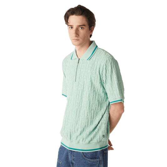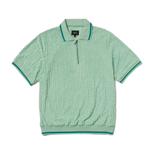 La maglia HUF Tether Jacquard è realizzata in morbida spugna di cotone con con motivo jacquard all-over e presenta una chiusura con zip nella parte superiore e bordi a costine.
