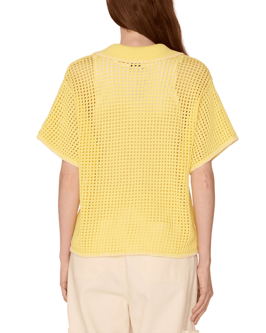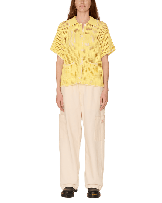 Questa maglia OBEY da donna è realizzata in morbido cotone e presenta un tessuto trapuntato lavorato ad uncinetto, colletto a costine e bottoni frontali.