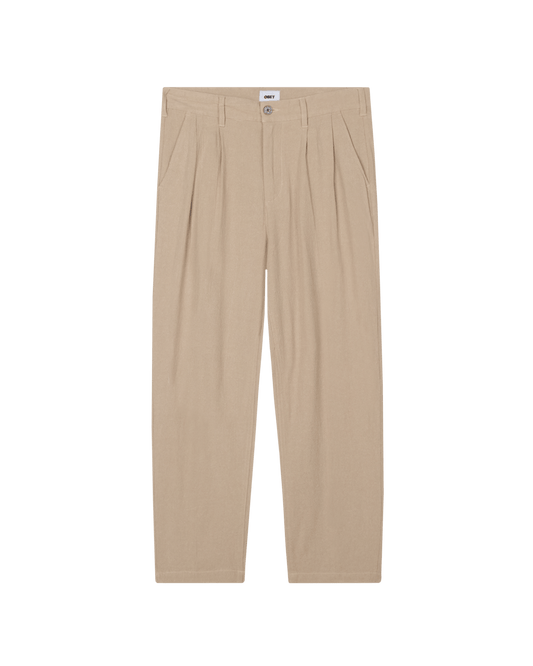 I pantaloni OBEY Fubar Pleated sono un modello senza tempo realizzato in misto lino e viscosa per un tocco morbido e fresco. Presentano tasche laterali, tasche posteriori a filetto e pieghe sul davanti.