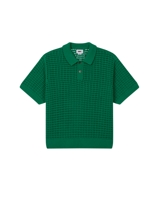 La maglia OBEY Kody in stile polo è realizzata in morbido cotone lavorato. Presenta una vestibilità rilassata con trama traforata e bottoni nella parte superiore.