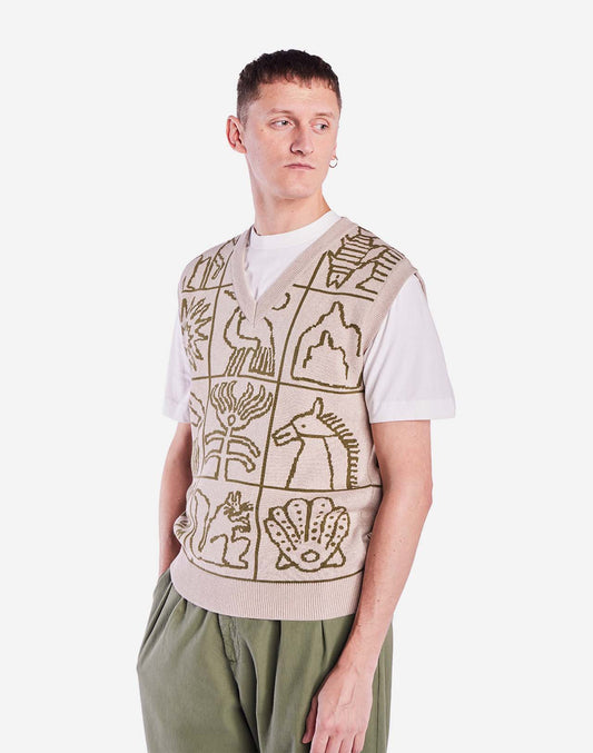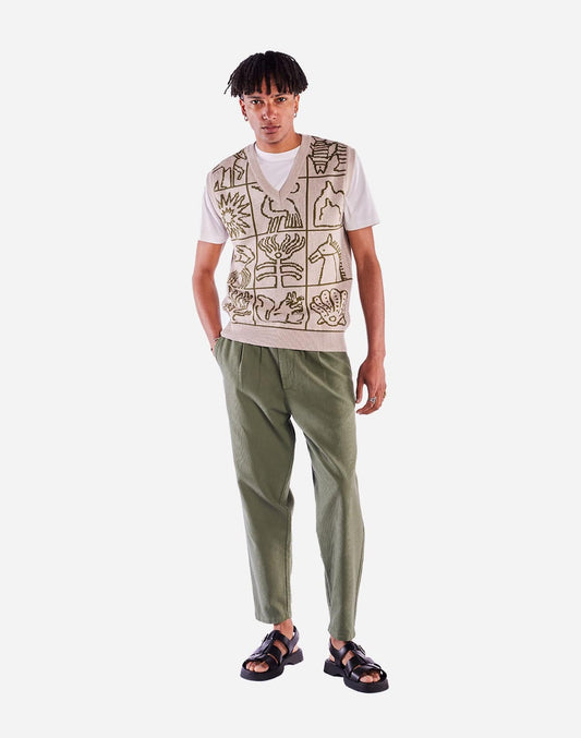 Gernow di Olow è un gilet dalla vestibilità morbida realizzato in cotone organico. Presenta una grafica personalizzata all-over e bordi a costine.