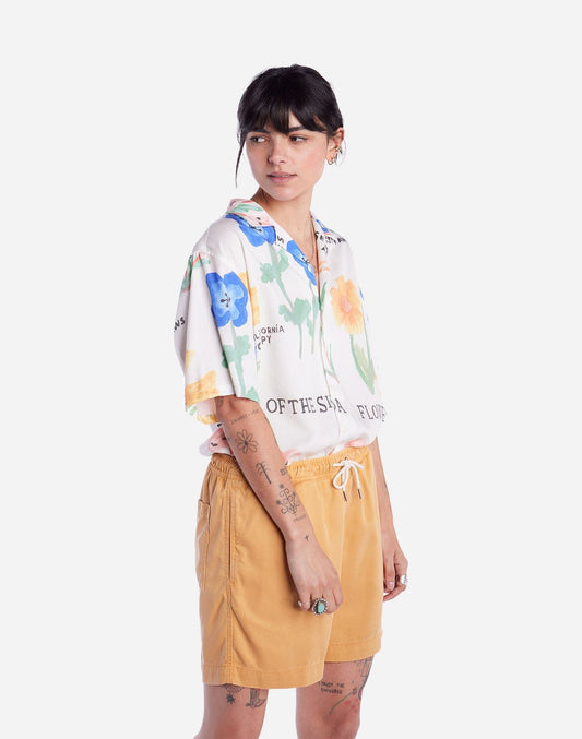 La camicia Olow Aloha Nevada a maniche corte è realizzata in morbido tencel e presenta una chiusura frontale con bottoni e grafica personalizzata stampata all-over.