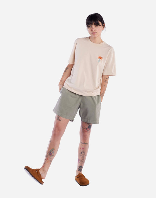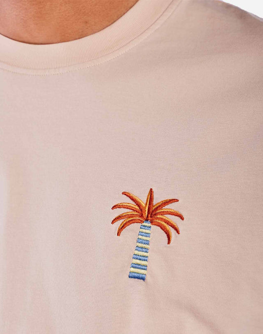La t-shirt a maniche corte Pejibaye di OLOW è realizzata in morbido cotone organico ed è caratterizzata da una grafica personalizzata ricamata sul petto realizzata dall'artista Freya Clarke.